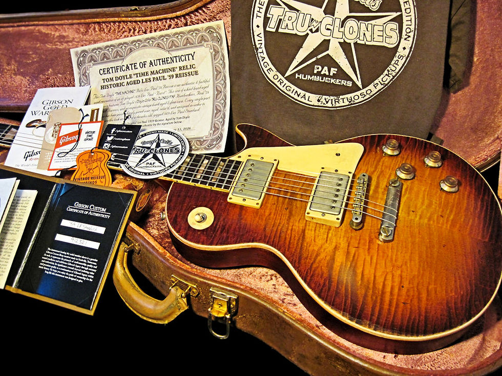 Who could offer a more authentic Les Paul guitar and better PAF replicas than the man who was the luthier, repair man and sound man for the legendary Les Paul himself… for almost 50 years! Well, that’s Tom Doyle! With his "TIME MACHINE” Les Paul Relic Series, Tom and his team have dedicated themselves completely to the look, sound and feel of the sought-after old vintage Les Pauls from the late 50s. Each instrument is completely hand aged (no razor blades). To reproduce the sound as accurately as possible, he uses their hand wound Doyle Coils TRU-CLONES PAF Humbuckers and their "'59 Holy Grail Harness" with 550k high Audio J Taper Pots and Real Paper-in-Oil Vintage Repro Bumblebees. The historic correctness is rounded off by the original vintage Lifton Case, which is of course also hand aged. The basis for this TIME MACHINE is a Gibson Custom Shop Historic '59 Les Paul made in 2021, which has been recreated in every detail with a heavy relic look & feel… just like a Vintage 1959 Les Paul Burst that’s been played for 60+ years. Our humbuckers are second to none, very direct, great sound and with tons of dynamics, just like you would expect from the original PAF Humbuckers… some say even better! No “Lab” could ever come close to these Vintage Masterpieces. These Tom Doyle TIME MACHINE Les Pauls are very rare, and hard to find as they are built one at a time, and in extremely small numbers.